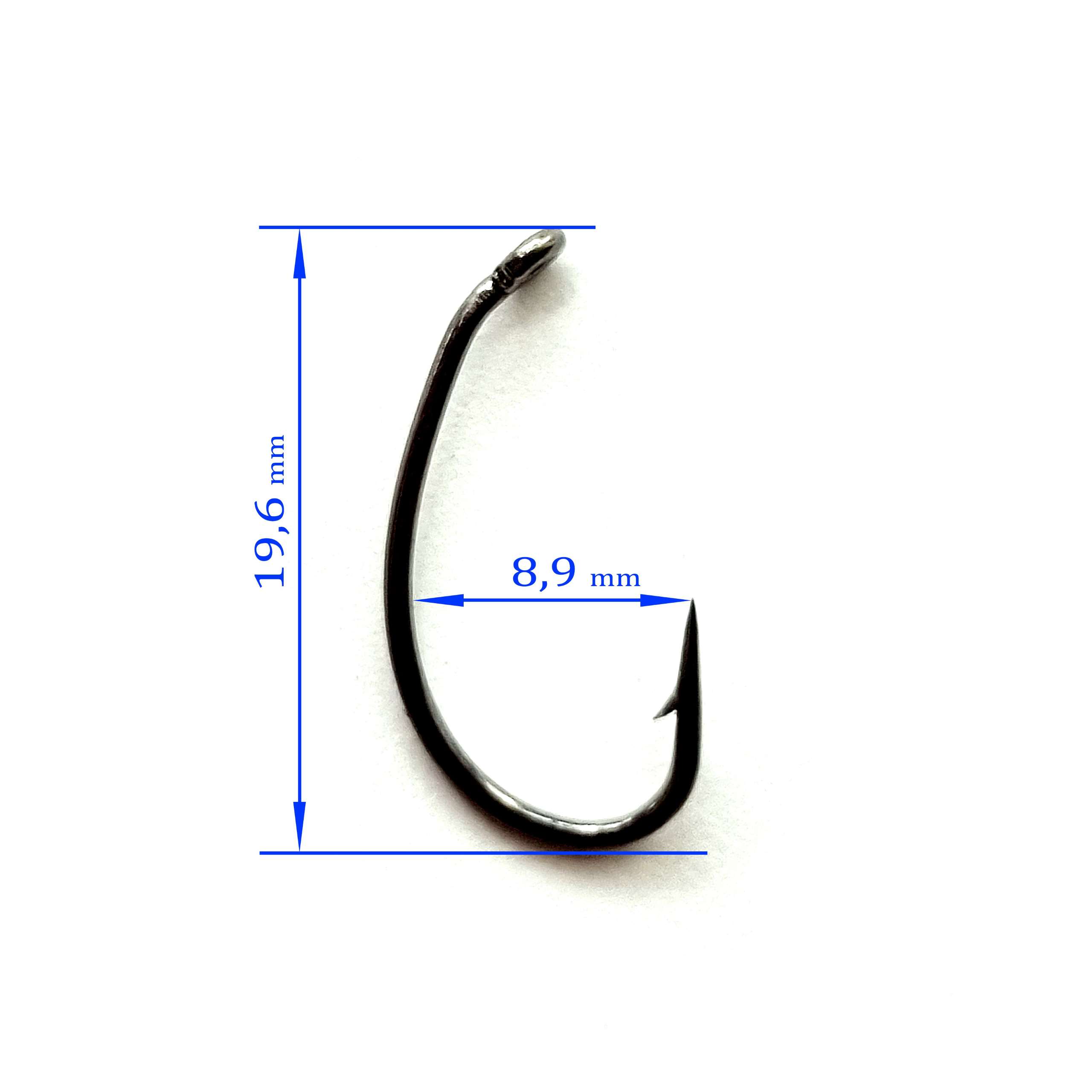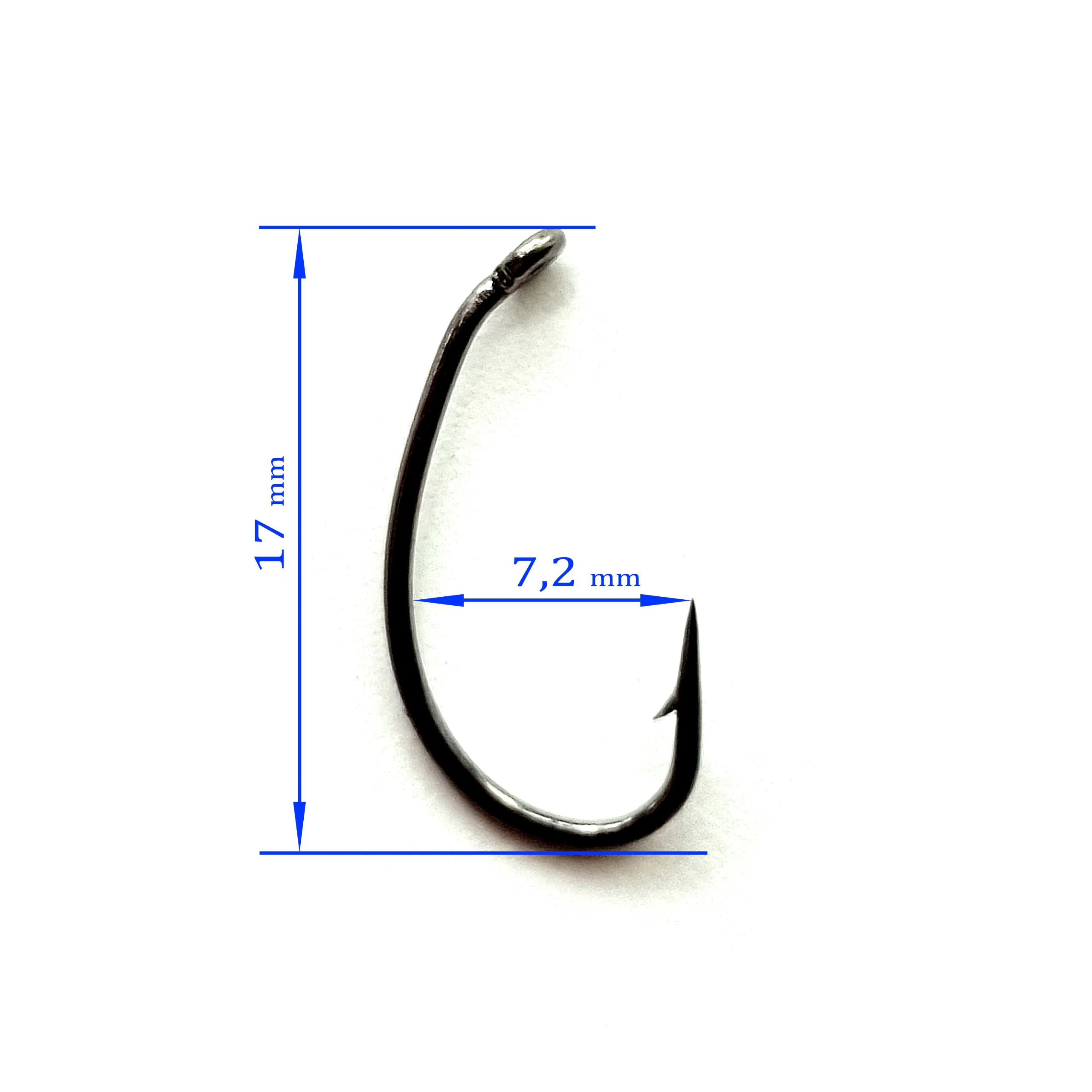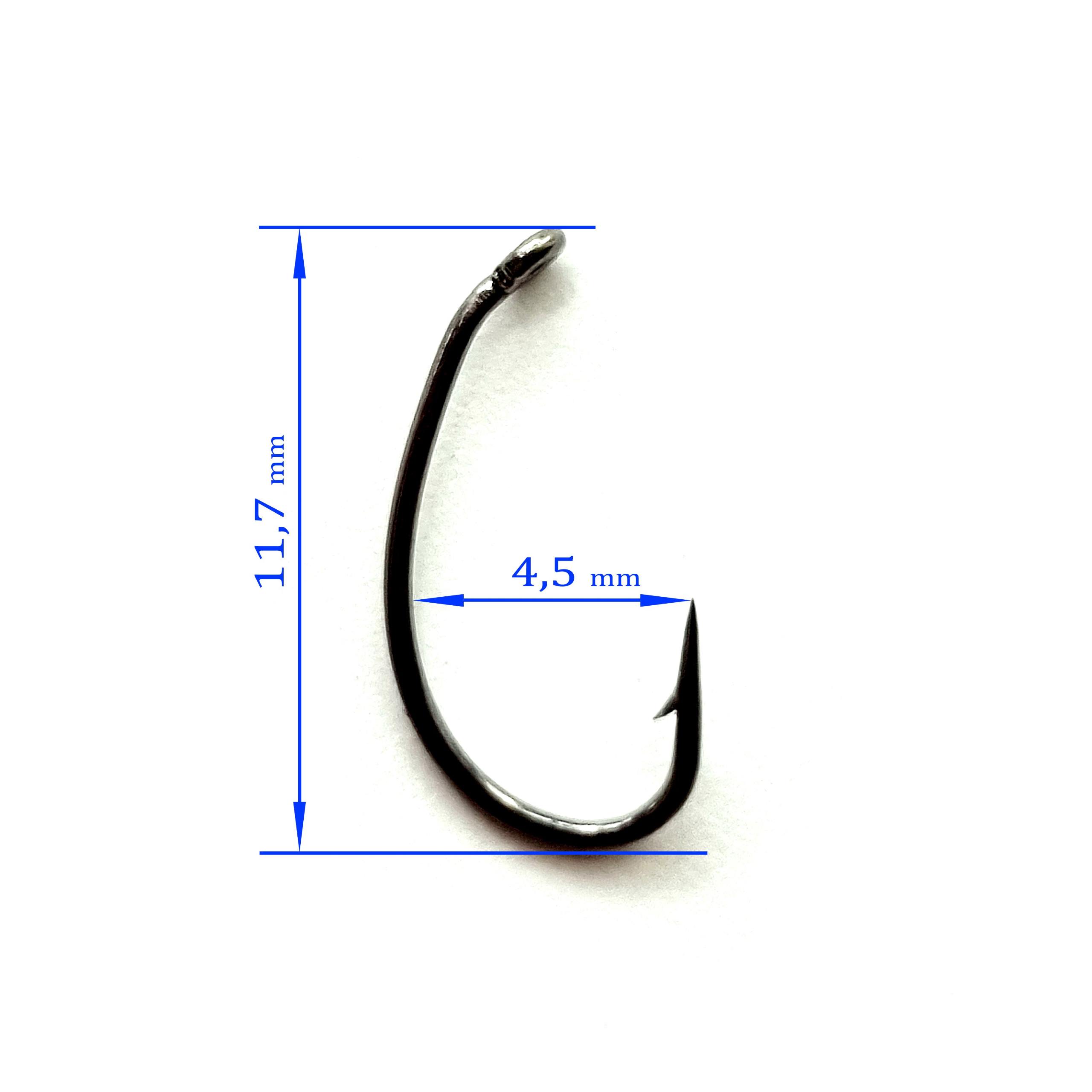 Крючок – выполнен из проволоки средней толщины , предназначен для ловли мирной рыбы. Чаще всего его используют для вязки мушек . Благодаря необычной форме, крючок считается самозасекающим.