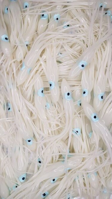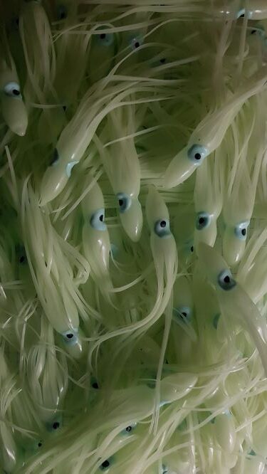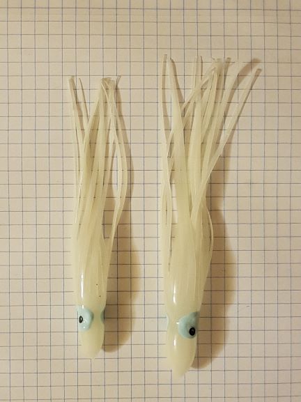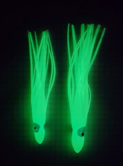 Октопусы (кальмары) изготовлены из силикона с добалением светонакопителя, предназначены для ловли многих морских видов рыб. Как на малых глубинах, так и на глубине более 500 метров, эта приманка хорошо заметна за счет своей особенности светится в темноте.